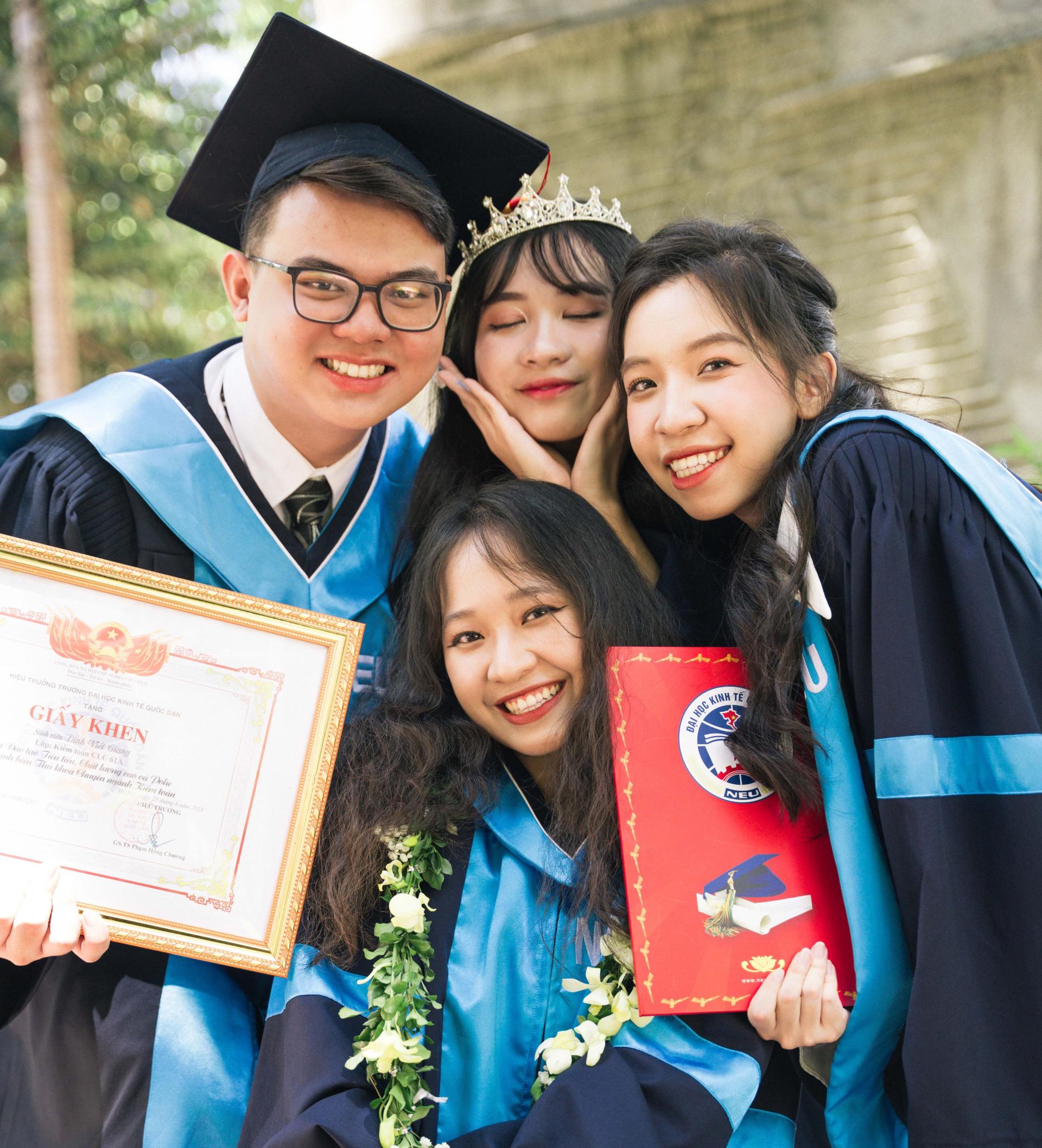 Nghiêm túc với bản thân trong suốt 4 năm, Viết Giang sở hữu bảng thành tích đáng kể như: giành được 12 học bổng học tập, top 10 sinh viên tiêu biểu trường Đại học Kinh tế Quốc dân 2022; giải Nhì sinh viên nghiên cứu khoa học cấp trường năm 2022, Á quân 1 cuộc thi “Lý tưởng sinh viên” 2022.