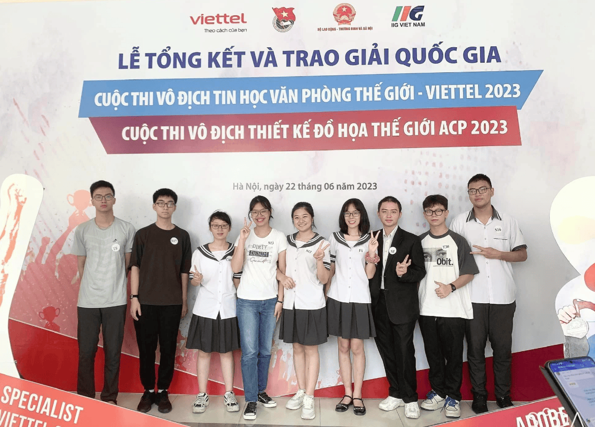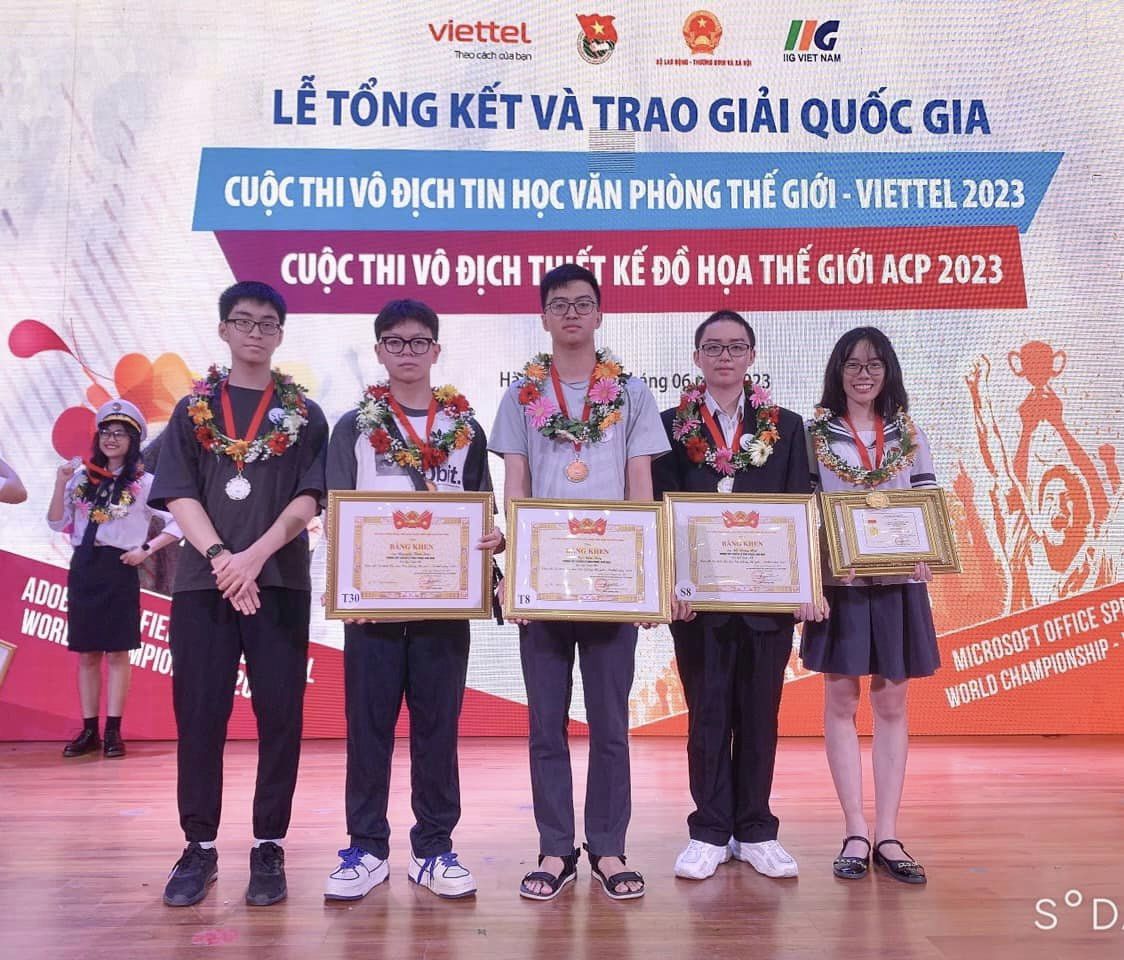 Sáng 22/06/2023, T.Ư Đoàn, Bộ LĐTB&XH, các bộ, ngành và Tổ chức Giáo dục IIG Việt Nam đã trang trọng tổ chức Lễ tổng kết và Trao giải quốc gia Cuộc thi Vô địch Tin học văn phòng Thế giới – Viettel 2023 (MOSWC-VIETTEL 2023) và Cuộc thi Vô địch Thiết kế đồ họa thế giới 2023 (ACPWC 2023) tại Hà Nội. Tham dự buổi lễ có cô giáo Nguyễn Hồng Vân, Bí thư Đoàn trường THPT chuyên Lê Hồng Phong cùng 9 học sinh đạt giải cuộc thi Vô địch Tin học văn phòng cấp Quốc gia 2023.