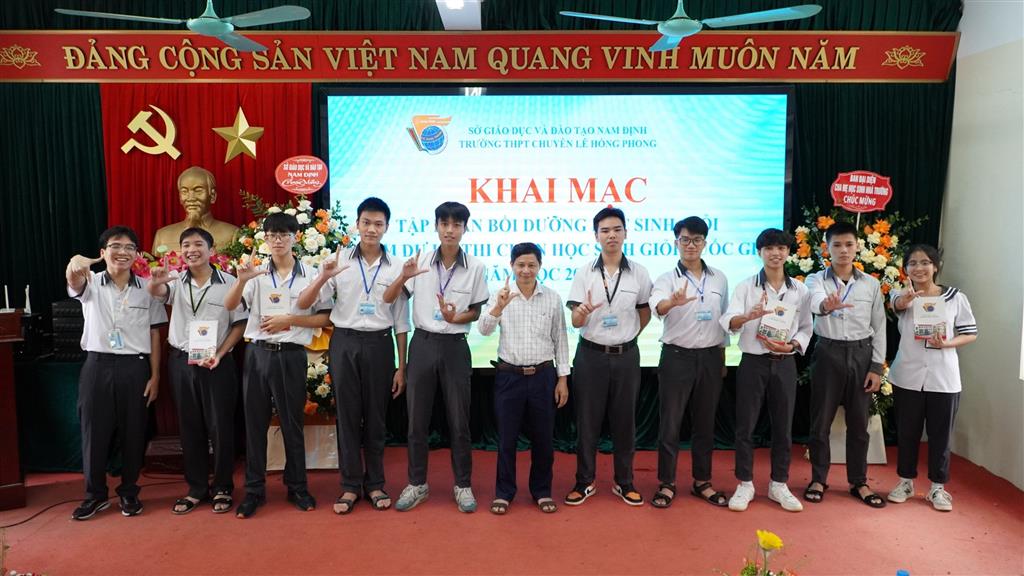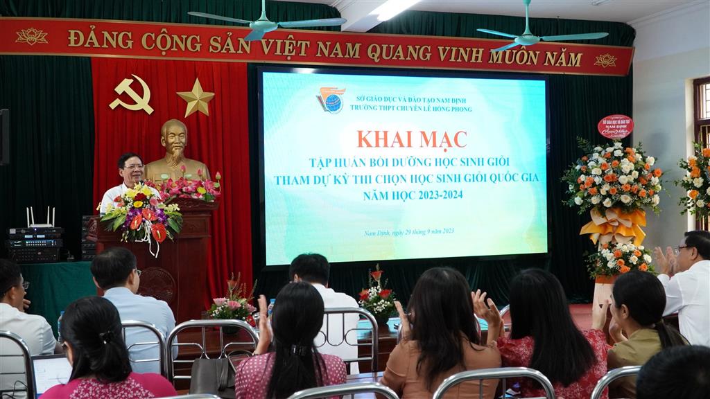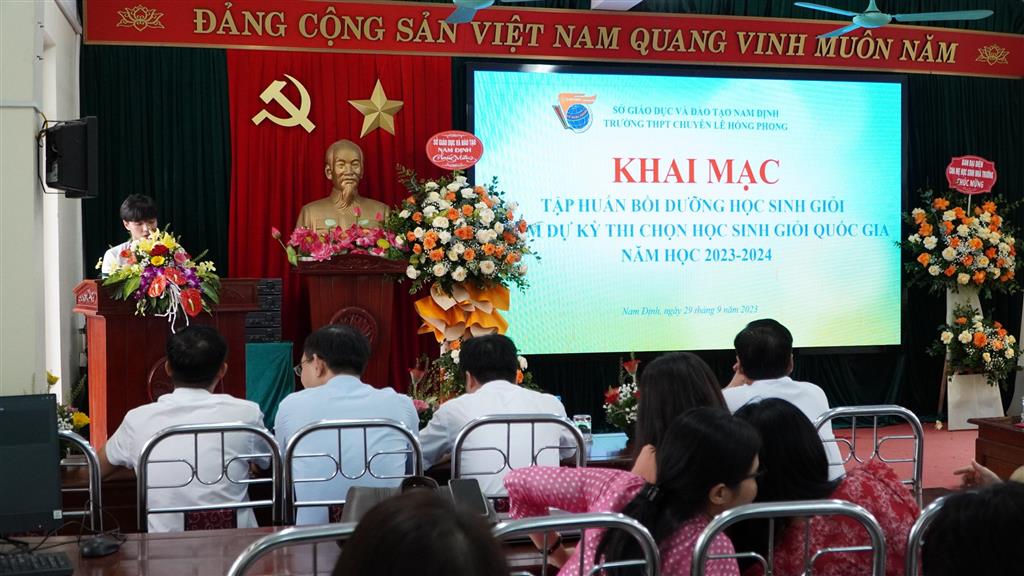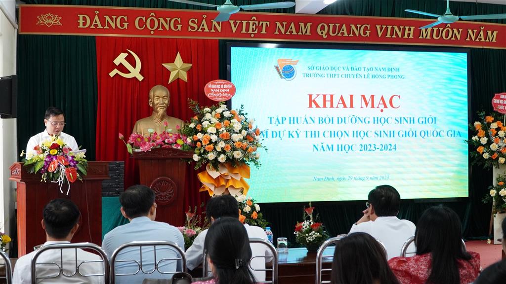 Ngày 29/9/2023, trường THPT chuyên Lê Hồng Phong long trọng tổ chức khai mạc đợt tập huấn bồi dưỡng học sinh giỏi tham dự kì thi chọn học sinh giỏi Quốc gia năm học 2023-2024. Đến dự buổi khai mạc có đồng chí Cao Xuân Hùng - Giám đốc Sở Giáo dục và Đào tạo Nam Định, các đồng chí lãnh đạo Sở, lãnh đạo các phòng ban của Sở Giáo dục và Đào tạo Nam Định; đại diện cha mẹ học sinh; các lãnh đạo, tổ trưởng chuyên môn, lãnh đội phụ trách các đội tuyển học sinh giỏi của nhà trường và 95 học sinh của 11 đội tuyển.
