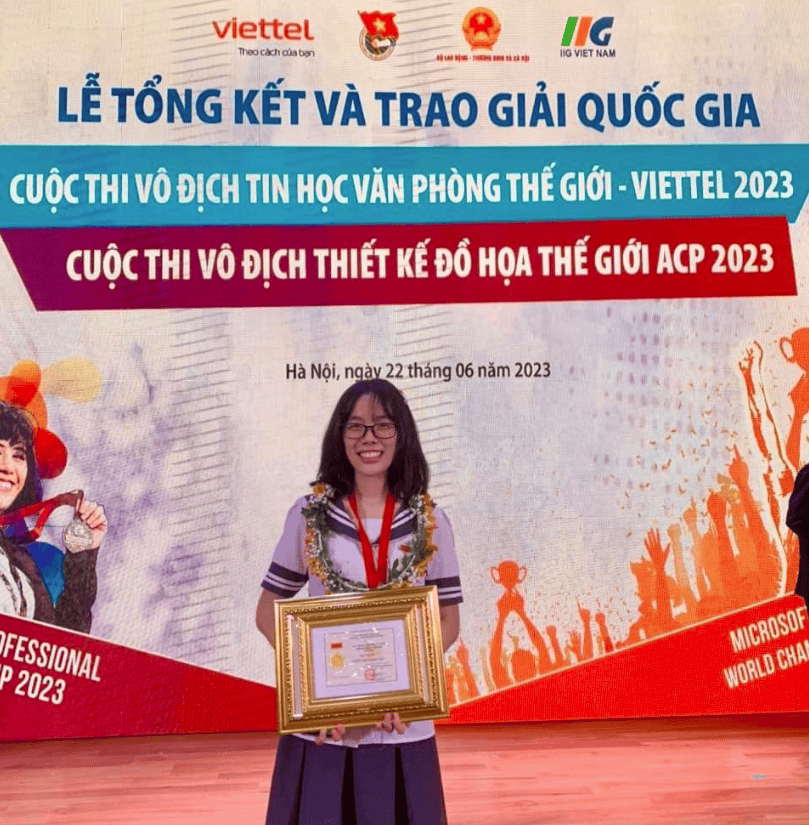 Sáng 22/06/2023, T.Ư Đoàn, Bộ LĐTB&XH, các bộ, ngành và Tổ chức Giáo dục IIG Việt Nam đã trang trọng tổ chức Lễ tổng kết và Trao giải quốc gia Cuộc thi Vô địch Tin học văn phòng Thế giới – Viettel 2023 (MOSWC-VIETTEL 2023) và Cuộc thi Vô địch Thiết kế đồ họa thế giới 2023 (ACPWC 2023) tại Hà Nội. Tham dự buổi lễ có cô giáo Nguyễn Hồng Vân, Bí thư Đoàn trường THPT chuyên Lê Hồng Phong cùng 9 học sinh đạt giải cuộc thi Vô địch Tin học văn phòng cấp Quốc gia 2023.